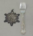 Gorham sterling Christmas 1971 ornament, Gorham sterling Strasbourg fork. Gorham sterling Christmas 1971 ornament, Gorham sterling Strasbourg fork.