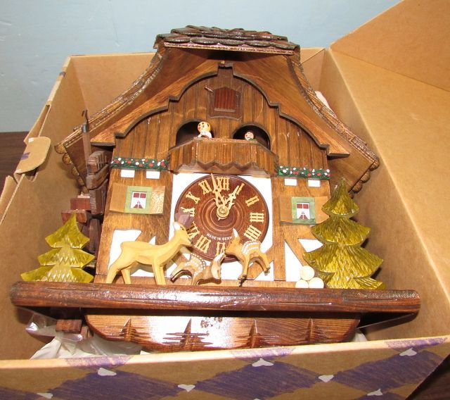 Hand made German Coo Coo Clock, in box, good condition, has weights, and pendulum, 12"h., 12"w. Hand made German Coo Coo Clock, in box, good condition, has weights, and pendulum, 12"h., 12"w.