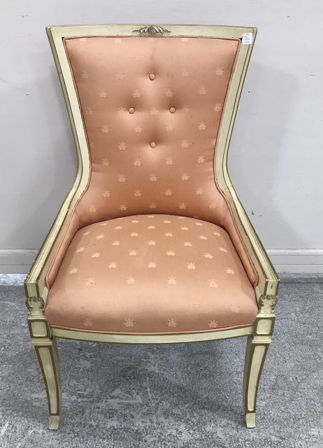 French provincial style side chair with fabric seat, needs cleaning, 36"h. French provincial style side chair with fabric seat, needs cleaning, 36"h.