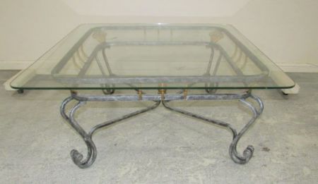 Glass Top coffee table with shell emblems in corners, 17"h., 31"sq. Glass Top coffee table with shell emblems in corners, 17"h., 31"sq.