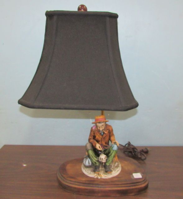 Porcellane Darte man with lamp stand, 24"h. Porcellane Darte man with lamp stand, 24"h.
