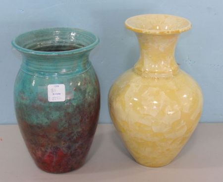 Phil Morgan Yellow Vase, Seagrove NC, 2005, 9 1/2"h., Shadyside pottery by Charles Bohn glazed vase 8"h. Phil Morgan Yellow Vase, Seagrove NC, 2005, 9 1/2"h., Shadyside pottery by Charles Bohn glazed vase 8"h.