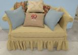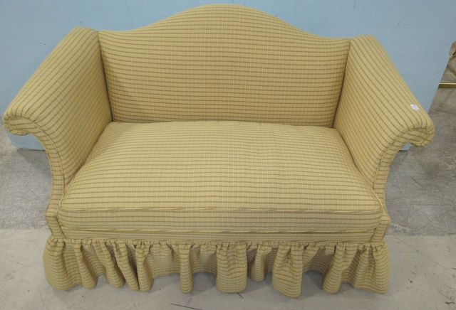 Striped fabric, one cushion, comes with decor pillows and throw pillows., 35"h., 55"w. Striped fabric, one cushion, comes with decor pillows and throw pillows., 35"h., 55"w.
