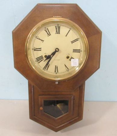 Has pendulum and key, 19"h., 12"w. Has pendulum and key, 19"h., 12"w.