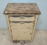 Factory made distressed stand with two pull out drawers with single door storage, 30"h., 20"w., 14"d. Factory made distressed stand with two pull out drawers with single door storage, 30"h., 20"w., 14"d.