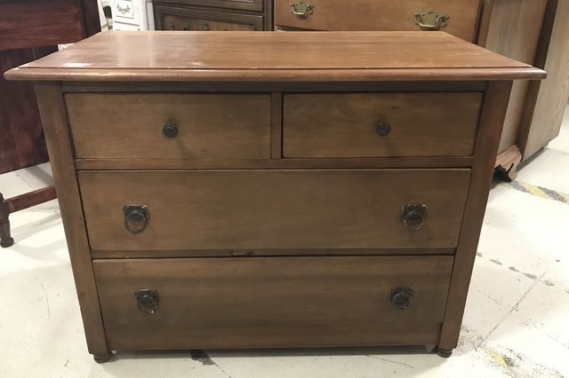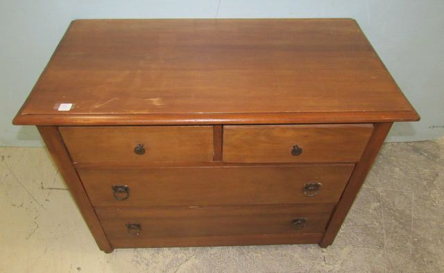 Butler's style chest with four drawers, one drawer has damage, has wear on finish, 26"h., 36"w., 19"d. Butler's style chest with four drawers, one drawer has damage, has wear on finish, 26"h., 36"w., 19"d.
