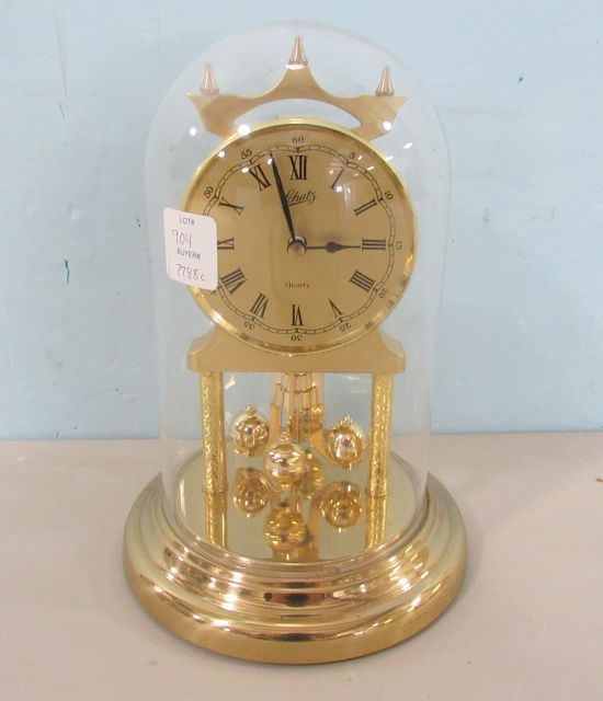 Schatz plastic frame with glass dome, battery powered, 9"h. Schatz plastic frame with glass dome, battery powered, 9"h.