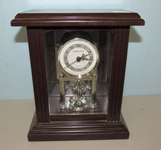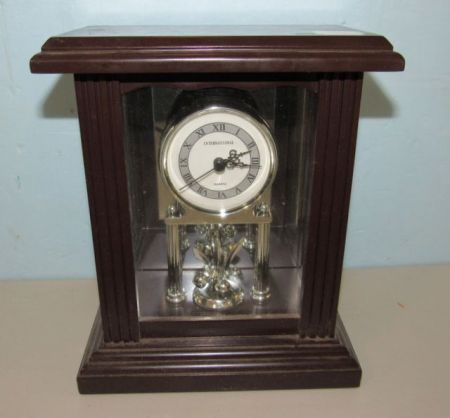 Battery powered, glass case, 9"h., 8"w. Battery powered, glass case, 9"h., 8"w.