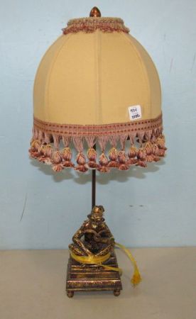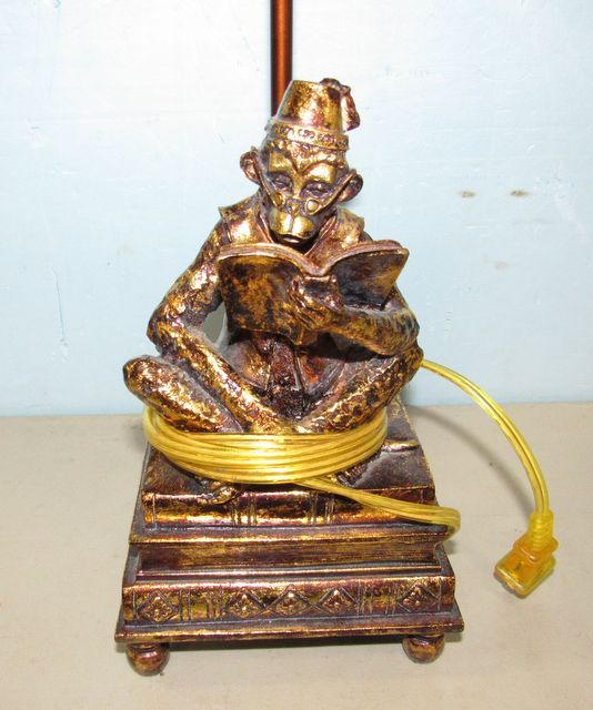 Modern decor gold painted wisdom monkey table lamp, 28"h. Modern decor gold painted wisdom monkey table lamp, 28"h.