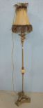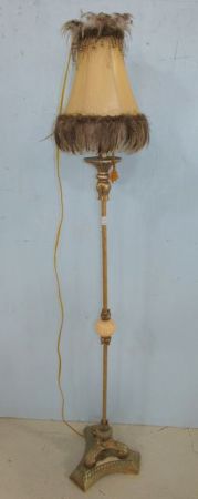 Ornate gold painted metal floor lamp with feather shade, 62"h. Ornate gold painted metal floor lamp with feather shade, 62"h.