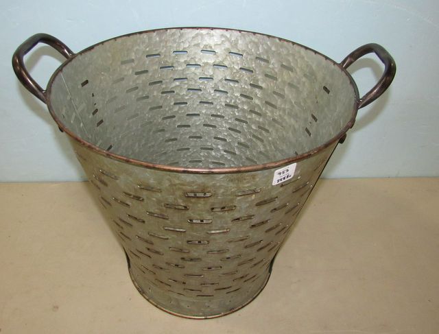 Handled galvanized metal basket, 16"h., 16"dia. Handled galvanized metal basket, 16"h., 16"dia.