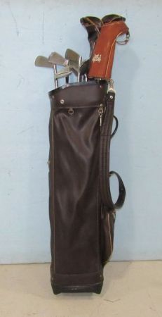 In vintage golf bag, woods and irons. In vintage golf bag, woods and irons.