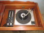 Electric record player and radio combo cabinet, New Vista Record Player, 27"h., 46"w., 17"d. Electric record player and radio combo cabinet, New Vista Record Player, 27"h., 46"w., 17"d.
