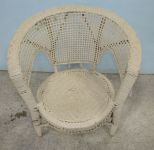 White wicker side/desk chair, has wear, 27"h. White wicker side/desk chair, has wear, 27"h.