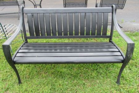 Metal black painted bench, good condition, 30"h., 50"L. Metal black painted bench, good condition, 30"h., 50"L.