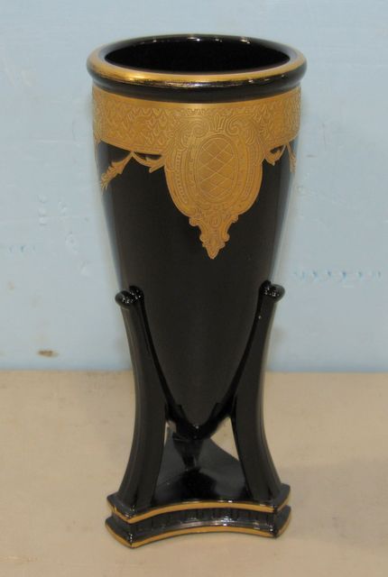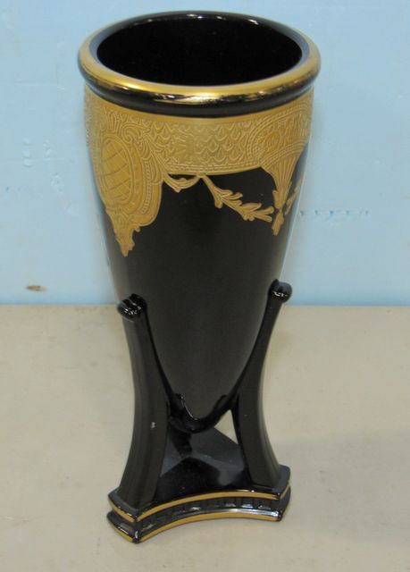 Gold trim and gold engraved design, 8"h. Gold trim and gold engraved design, 8"h.