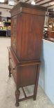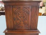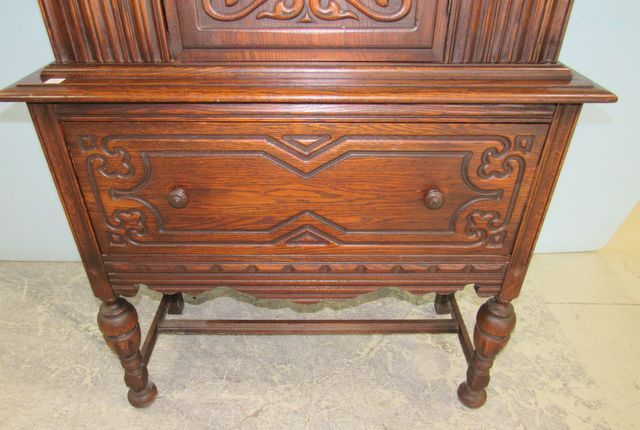 One door, one wood shelf, one drawer, dove tailed, carved designs, good condition, 64"h., 38"w., 16"d. One door, one wood shelf, one drawer, dove tailed, carved designs, good condition, 64"h., 38"w., 16"d.