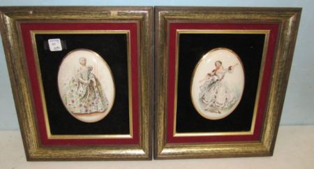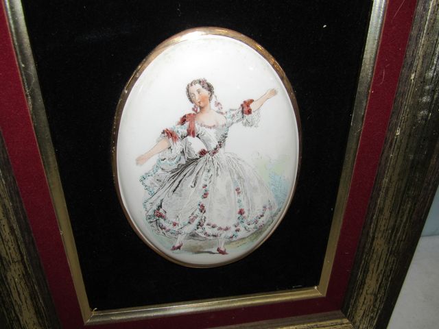 Framed lady porcelain plaque with felt back, 14"h., 12"w. Framed lady porcelain plaque with felt back, 14"h., 12"w.