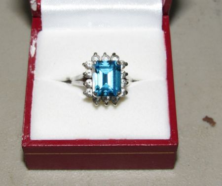 Marked sterling silver setting surrounding clear stones, size is 5 3/4. Marked sterling silver setting surrounding clear stones, size is 5 3/4.