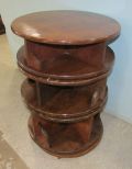 Three removable pieces stacked with a bottom base, modern piece, stained wood, 35"h., 24"dia. Three removable pieces stacked with a bottom base, modern piece, stained wood, 35"h., 24"dia.