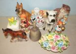 Ceramic hand painted cat 6"h., ceramic boxer 7"h., Schnauzer dog, three occupied Japan figurines, occupied porcelain candle holder (has chip on rim), Second Edition Annual Bell Goebel 1978, Hunting German porcelain horse, pearl porcelain flower basket. Ceramic hand painted cat 6"h., ceramic boxer 7"h., Schnauzer dog, three occupied Japan figurines, occupied porcelain candle holder (has chip on rim), Second Edition Annual Bell Goebel 1978, Hunting German porcelain horse, pearl porcelain flower basket.