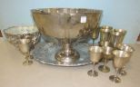 747 Silver Plate Pedestal Punch Bowl, Cups, Ladle, and Underplate
