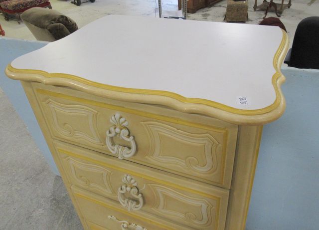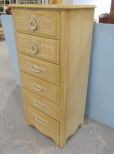 Six Drawers, painted yellow, white top, 53"h., 24"w., 17"d. Six Drawers, painted yellow, white top, 53"h., 24"w., 17"d.