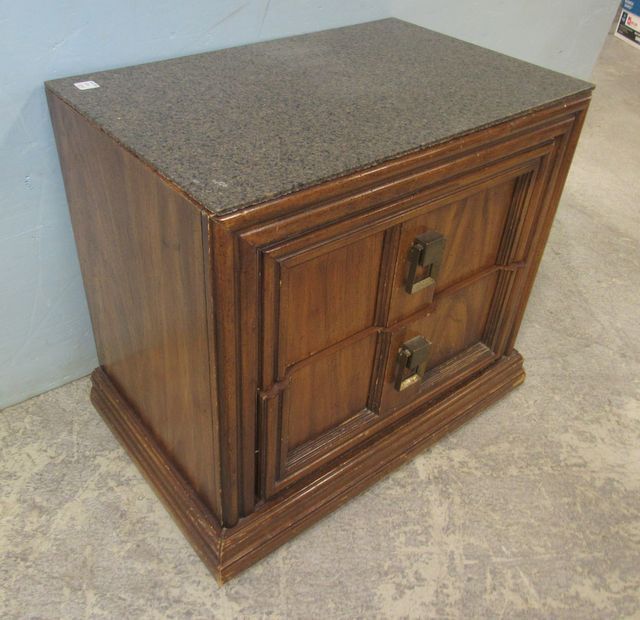 Two drawer, top is worn, has removable fiber glass faux marble top, 23"h., 25"w., 16"d. Two drawer, top is worn, has removable fiber glass faux marble top, 23"h., 25"w., 16"d.