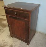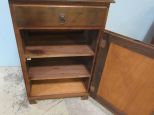 Lion head pulls, needs work, one drawer, door with shelving, 32"h., 21"w. Lion head pulls, needs work, one drawer, door with shelving, 32"h., 21"w.