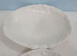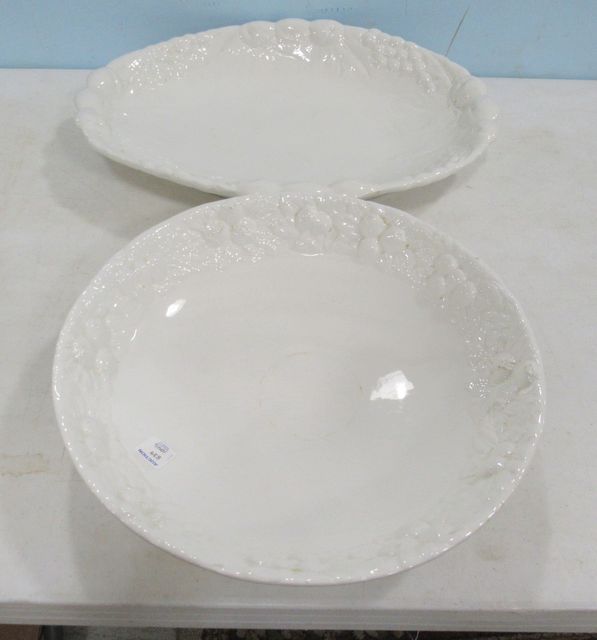 White glazed ceramic platter 20"w., white glazed ceramic bowl 15"dia. White glazed ceramic platter 20"w., white glazed ceramic bowl 15"dia.