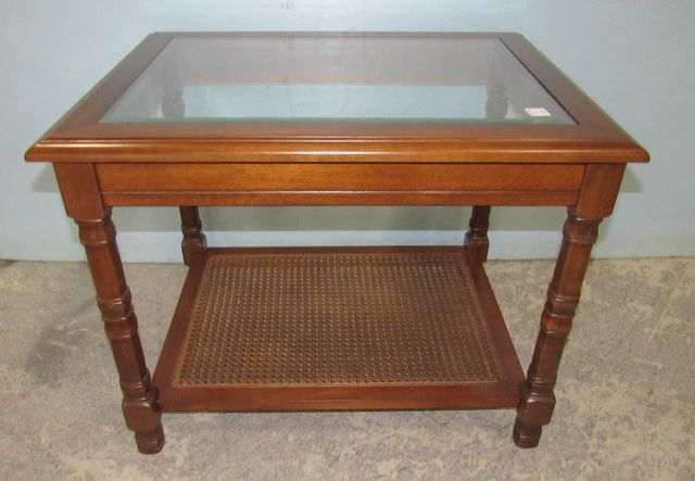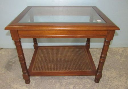 Bottom Shelf is cane, beveled glass inset, 20"h., 27"L., 21"w. Bottom Shelf is cane, beveled glass inset, 20"h., 27"L., 21"w.
