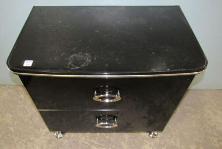 Two drawer, chrome pulls, trim, and feet, top has wear, 24"h., 26"w. Two drawer, chrome pulls, trim, and feet, top has wear, 24"h., 26"w.
