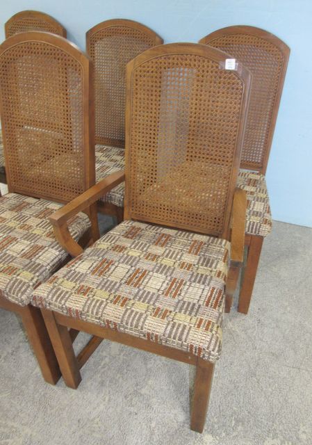 Cane back, two arm, four sides, patch work style cushions, 1980s, 40"h. Cane back, two arm, four sides, patch work style cushions, 1980s, 40"h.