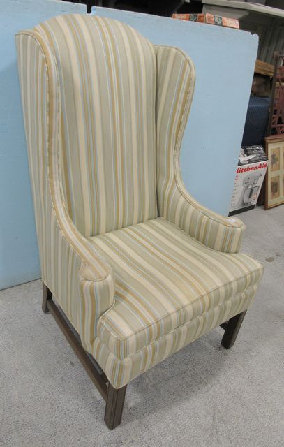 1048 Ethan Allen Traditional Classics Striped Wing Back Chair