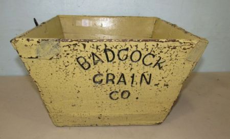 Painted distressed grain bin, 10"h., 15"sq. Painted distressed grain bin, 10"h., 15"sq.