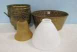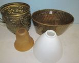 1135 Modern Brass Planters and Two Glass Lamp Shades