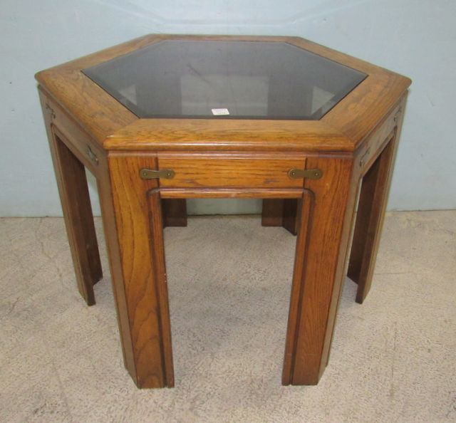 1191 Contemporary Octagon Glass Top Side Table
