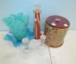 Mosaic glass cover, multi color candle holder, crimped decor glass vase and plate. Mosaic glass cover, multi color candle holder, crimped decor glass vase and plate.