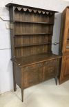 Antique oak welsh cabinet, two peice, three display shelves, two drawers, two door, good condition, 80"h., 48"w., 21"d. Antique oak welsh cabinet, two peice, three display shelves, two drawers, two door, good condition, 80"h., 48"w., 21"d.