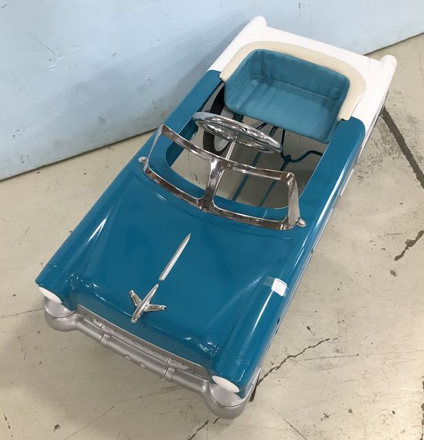 Metal Vintage Buick Peddle Car, working condition, single seat, has some small dents, good condition, 16"h., 38"w. Metal Vintage Buick Peddle Car, working condition, single seat, has some small dents, good condition, 16"h., 38"w.