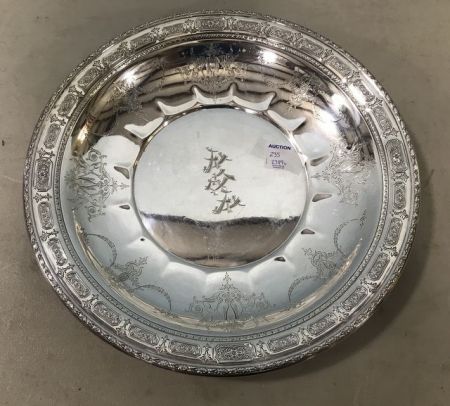 Towle "Old Master" Sterling Charger Plate, no. 6668, has symbol monogram, 1 1/2"h, 12"dia. 16.910 ozt. Towle "Old Master" Sterling Charger Plate, no. 6668, has symbol monogram, 1 1/2"h, 12"dia. 16.910 ozt.
