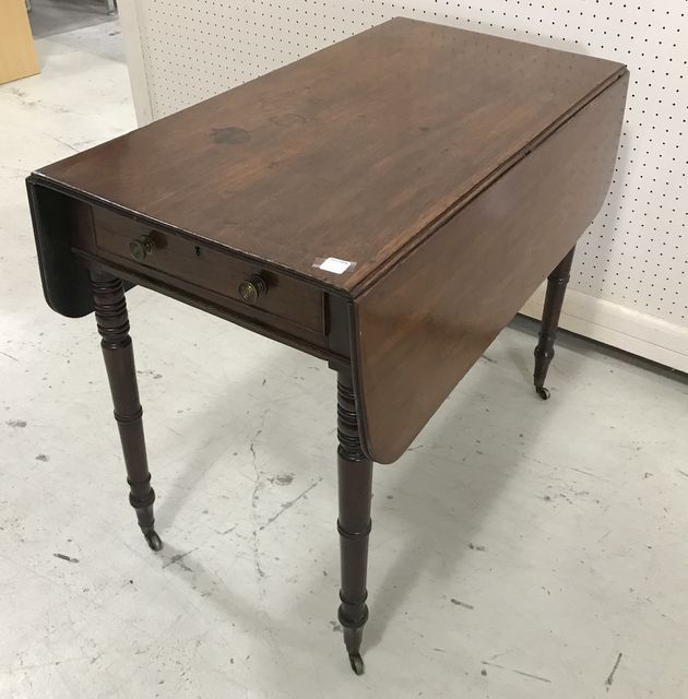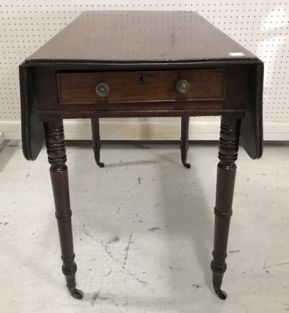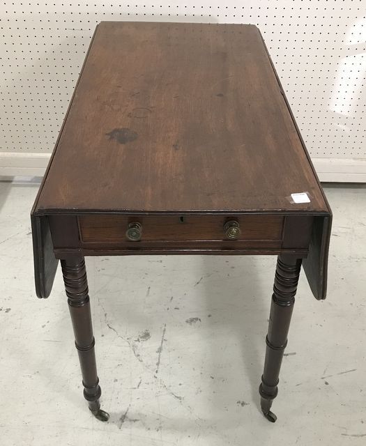 Antique Pembroke Style Butler Table, drop side leaves, single drawer, on brass casters, good condition, 28"h., 35"d. Antique Pembroke Style Butler Table, drop side leaves, single drawer, on brass casters, good condition, 28"h., 35"d.