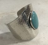 310 Large Faux Turquoise Stone Silver Tone Metal Cuff Bracelet