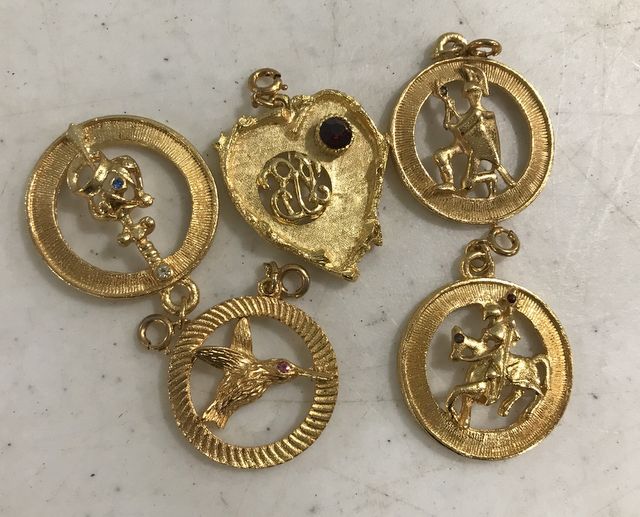 5 Gold Plated Large Charms or Pendants. 5 Gold Plated Large Charms or Pendants.