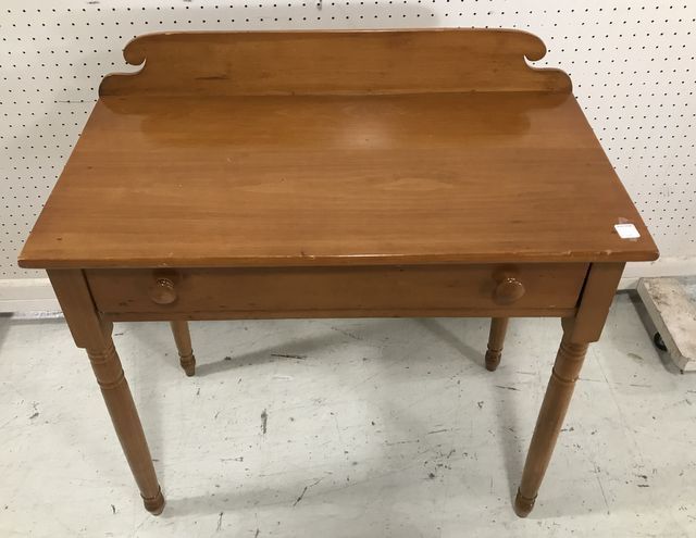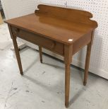 Vintage Single Drawer Wall Console Stand, taped legs, back splash, has some finish wear, 33"h., 32"w., 16"d. Vintage Single Drawer Wall Console Stand, taped legs, back splash, has some finish wear, 33"h., 32"w., 16"d.