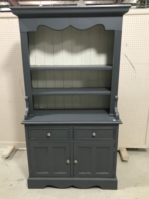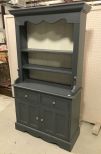 Modern Painted Green Bookcase, two piece, good paint job, two display shelves, two drawer, two door, 77"h., 42"w., 17"d. Modern Painted Green Bookcase, two piece, good paint job, two display shelves, two drawer, two door, 77"h., 42"w., 17"d.