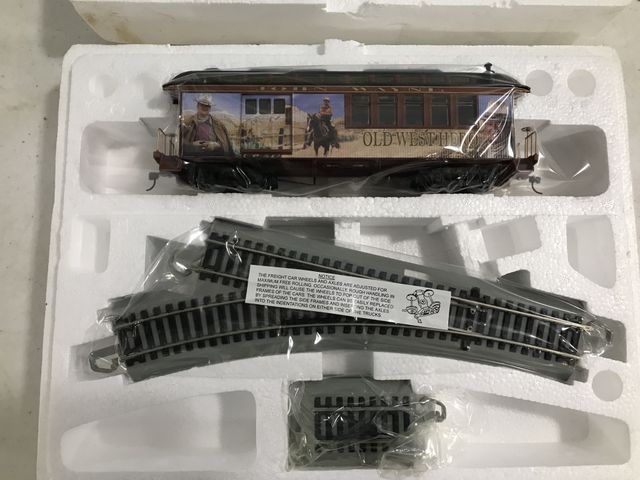 BradFord Exchange Heritage Village John Wayne Duke Express, 6 cars, track, & transformer, certificate of Authenticity enclosed. New. BradFord Exchange Heritage Village John Wayne Duke Express, 6 cars, track, & transformer, certificate of Authenticity enclosed. New.