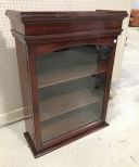 Antique Single Door Display Cabinet, glass panels, two shelfs, dark mahogany, brass pull, has key, 45"h., 33"w., 14"d. Antique Single Door Display Cabinet, glass panels, two shelfs, dark mahogany, brass pull, has key, 45"h., 33"w., 14"d.