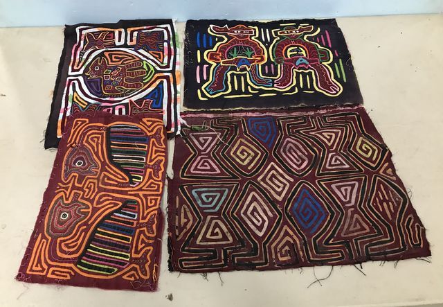 Bag of Four Kuna Indian Molas, American Indians, four assorted styles, San Blas Islands, Panama, inverse stitching by hand. Bag of Four Kuna Indian Molas, American Indians, four assorted styles, San Blas Islands, Panama, inverse stitching by hand.