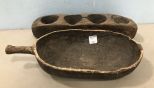 Old Mexican sugar mold, Chich, Mexico, 15"w., old wood dipper hand carved 14"w. Old Mexican sugar mold, Chich, Mexico, 15"w., old wood dipper hand carved 14"w.
